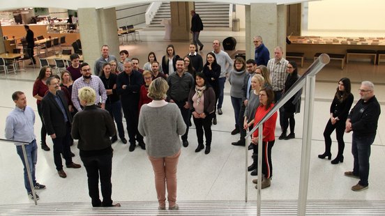 Nach einer Begrüßung durch Dr. Andrea Langer (Leiterin des Referates Wissenschaftsmanagement und Marketing des GNM) und Christine Bruchmann (Geschäftsführerin Fürst Gruppe) ging es in zwei Gruppen aufgeteilt in eine jeweils einstündige Exklusivführung.