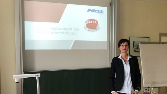 Seit die Fürst Gruppe 2013 zum ersten Mal die Anfrage erhielt, Vorträge beim Amt für Ernährung, Landwirtschaft und Forsten anzubieten, war Christine Matuschke dort bereist zum dritten Mal Referentin. „In erster Linie geht es um Wissensvermittlung aus Sicht eines Praktikers“, fasst die Vertriebsmitarbeiterin zusammen. „Viele der Teilnehmerinnen werden sich früher oder später sicher einmal in der Situation wiederfinden und Angebote einholen müssen. Dann ist es mir wichtig, dass sie die Hintergründe kennen und wissen, was zu tun ist.“