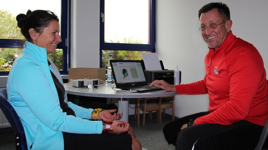 Tatjana Herold aus dem Einkauf hatte sich unter anderem beim Biofeedback eingetragen. Die Testung der Herzfrequenz habe ihr gezeigt, dass sie durch äußere Einflüsse „schnell in Stress“ gerate, sagte Herold, nachdem sie ihr Ergebnis in Händen hielt. Die Fürst-Mitarbeiterin fand das Biofeedback „sehr interessant“ und will die Tipps von Dipl. Sportwissenschaftlerin Sandy Franke prompt Zuhause umsetzen. „Wenn ich richtig atme, soll in Stresssituationen meine Herzfrequenz sinken – das probiere ich aus“, sagte Tatjana Herold.