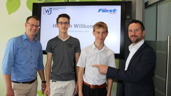 Einen Tag lang Chef sein. Für 33 Schülerinnen und Schüler ist dieser Traum wahr geworden. Bereits zum sechsten Mal haben die Wirtschaftsjunioren Nürnberg Jugendliche im Rahmen ihrer Aktion „Schüler als Bosse“ auf Chefsessel gesetzt. Erneut hat sich auch die Fürst Gruppe an dem Projekttag beteiligt. Zwei junge Männer schnupperten unter der Fittiche von CDO und IT-Leiter Markus Zwingel in den IT-Bereich hinein.