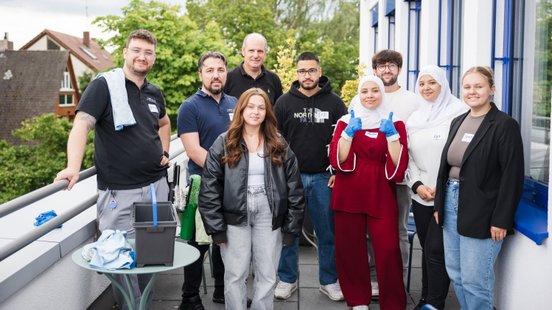 In unserer Waschhalle ging es richtig zur Sache. Hier lernten die Jugendlichen moderne Reinigungsmaschinen kennen – und durften sie natürlich auch selbst bedienen. Auf unserer Außenterrasse wartete ein weiteres Highlight: die Glasreinigung mit professionellem Equipment in luftiger Höhe. Dabei erfuhren die Teilnehmenden nicht nur, wie viel Know-how und Technik hinter einem sauberen Ergebnis stecken, sondern auch, wie wichtig der richtige Umgang mit Reinigungschemikalien ist. Am Ende des Tages war klar: Gebäudereinigung ist ein anspruchsvoller, systemrelevanter Beruf – mit viel Potenzial.