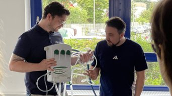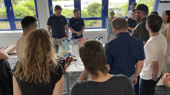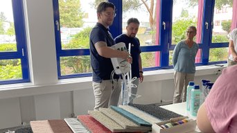 Ein besonders anschauliches Beispiel: die Umstellung unserer Reinigungschemie auf nachhaltigere Produkte der Tana-Chemie GmbH. Unsere Anwendungstechniker Tayfun Tuncer und Julian Nabein erklärten detailliert den Entscheidungsprozess – und demonstrierten anschließend live, wie professionelle Reinigung heute aussieht. Mit aufgebauter Dosieranlage, oszillierender Reinigungsmaschine und viel Praxisbezug wurde klar: Nachhaltigkeit und Qualität schließen sich nicht aus – sie gehören bei uns zusammen.