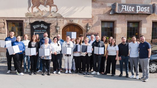 Die Ausbildung ist bewusst so aufgebaut, dass sie sich mit dem operativen Alltag vereinbaren lässt. Über das Jahr hinweg nehmen die Teilnehmenden an 16 theoretischen und 4 praktischen Schulungstagen teil, in regelmäßigen Modulen, die direkt anwendbares Wissen vermitteln. Interne Experten und externe Fachdozenten bringen dabei unterschiedliche Perspektiven ein – immer mit dem Ziel, Theorie und Praxis eng miteinander zu verbinden. Ein besonderer Bestandteil ist die praktische Prüfung: Hier zeigen die Teilnehmenden ihr Können direkt im Arbeitskontext – etwa bei der strukturierten Einarbeitung neuer Mitarbeitender.